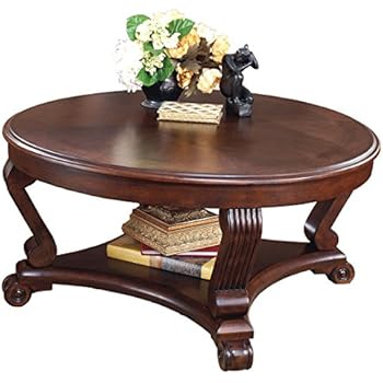 Frequently asked coffee tables questions. A beautiful sculptural shape gives another dimension serpentine legs and glass tabletop are the main features of this ashley furniture coffee table. Round coffee tables are classic in any home making it look great. Replicated blackened wood finish with gray textural grain. Features 8mm beveled glass top.